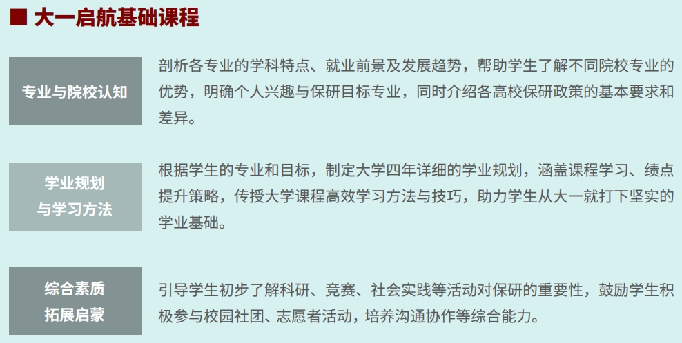 3、深研各校保研政策与偏好,精准剖析学员优劣势,定制科学规划方案,用扎实专业度破解升学难题,直击保研核心需求。