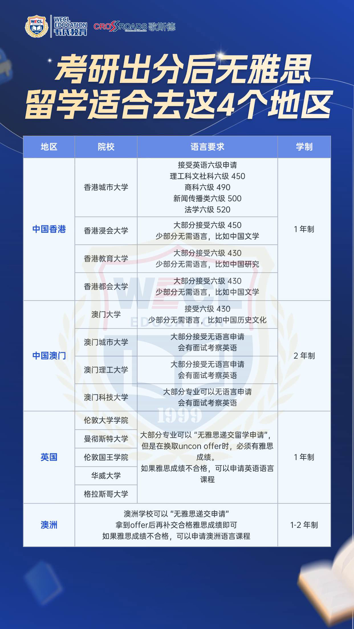 英/澳/港/加多数院校3-5月仍可申请考研英语雅思基础,复习周期短申请制一考定终身,可同时申多所