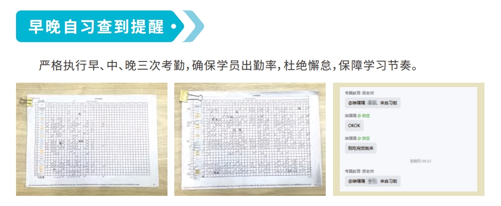 名师授课+督学管家:⾏业名师确保授课深度,配备专属督学⽼师负责⽇常管理、学习监督和⼀对⼀⼼理疏导。三重查到机制:严格执⾏早、中、晚三次考勤,确保学员出勤率,杜绝懈