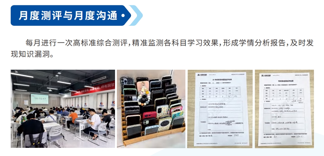 ⽉度综合测评:每⽉进⾏⼀次⾼标准综合测评,精准监测各科⽬学习效果,形成学情分析报告,及时发现知识漏洞。