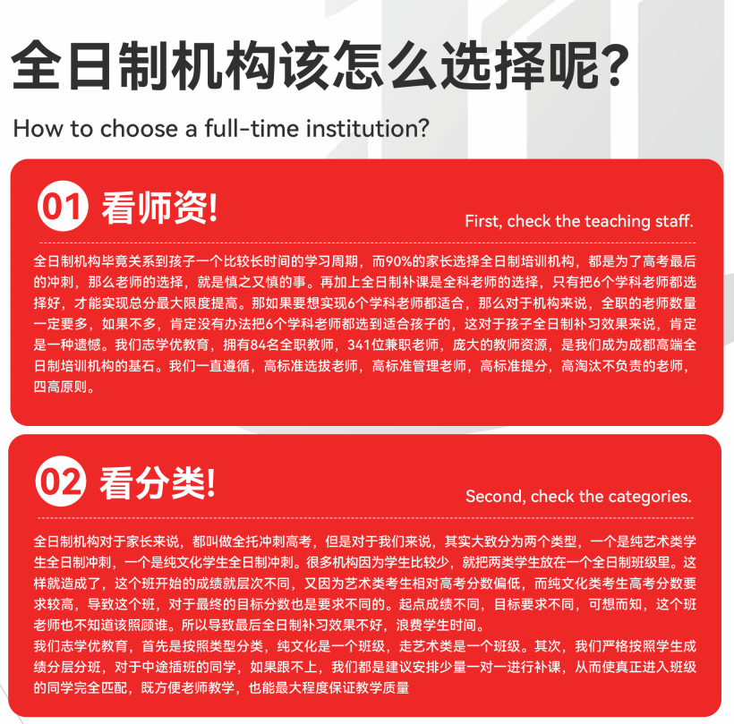 以上是书香网王老师整理的关于“盘点成都教学十佳的高二补习辅导培训班名单出炉-志学优教育”的相关介绍。想进一步了解更多关于高二全日制,高三全日制,高中全日制,高一全日制,全日制复读,全日制艺考,高中班级,初三全日制等辅导问题,可拨打客服电话咨询,或在线留下您的联系信息。我们将为您提供一对一的咨询服务!