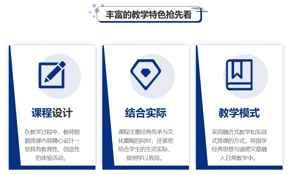 (突出国学育人特色,经过多年实践创新,成功走出了一条国学主导、心理辅导、军事训导、实践悟导四位一体的教育转化问题青少年的办学新路。)