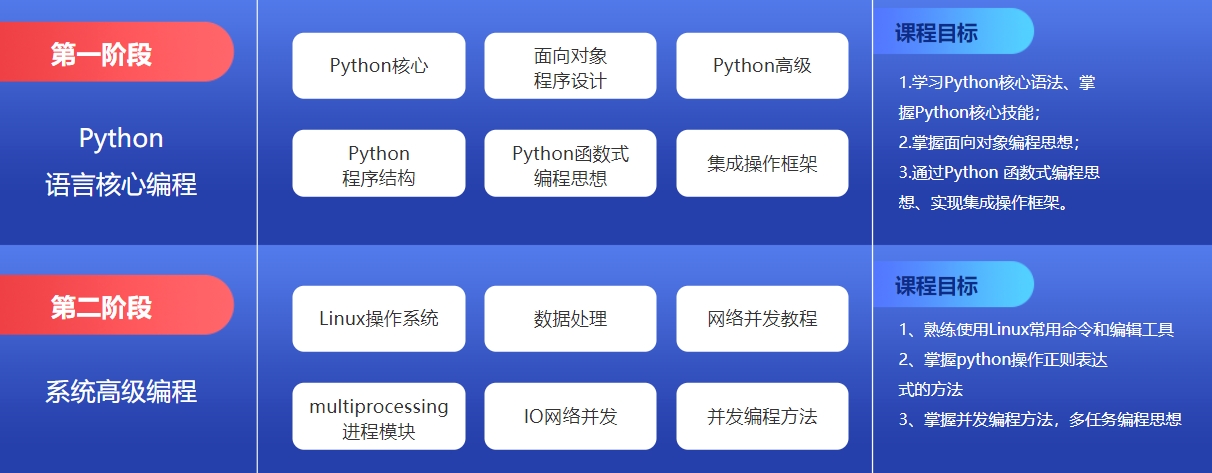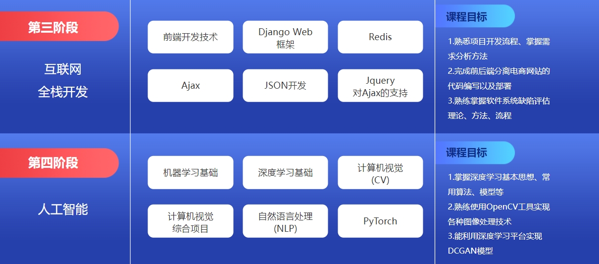 2、因材施教分级培优:根据学员不同能力起点,对标企业不同层级的岗位,匹配个性化的课程,让零基础学员好就业,让有基础学员就好业。