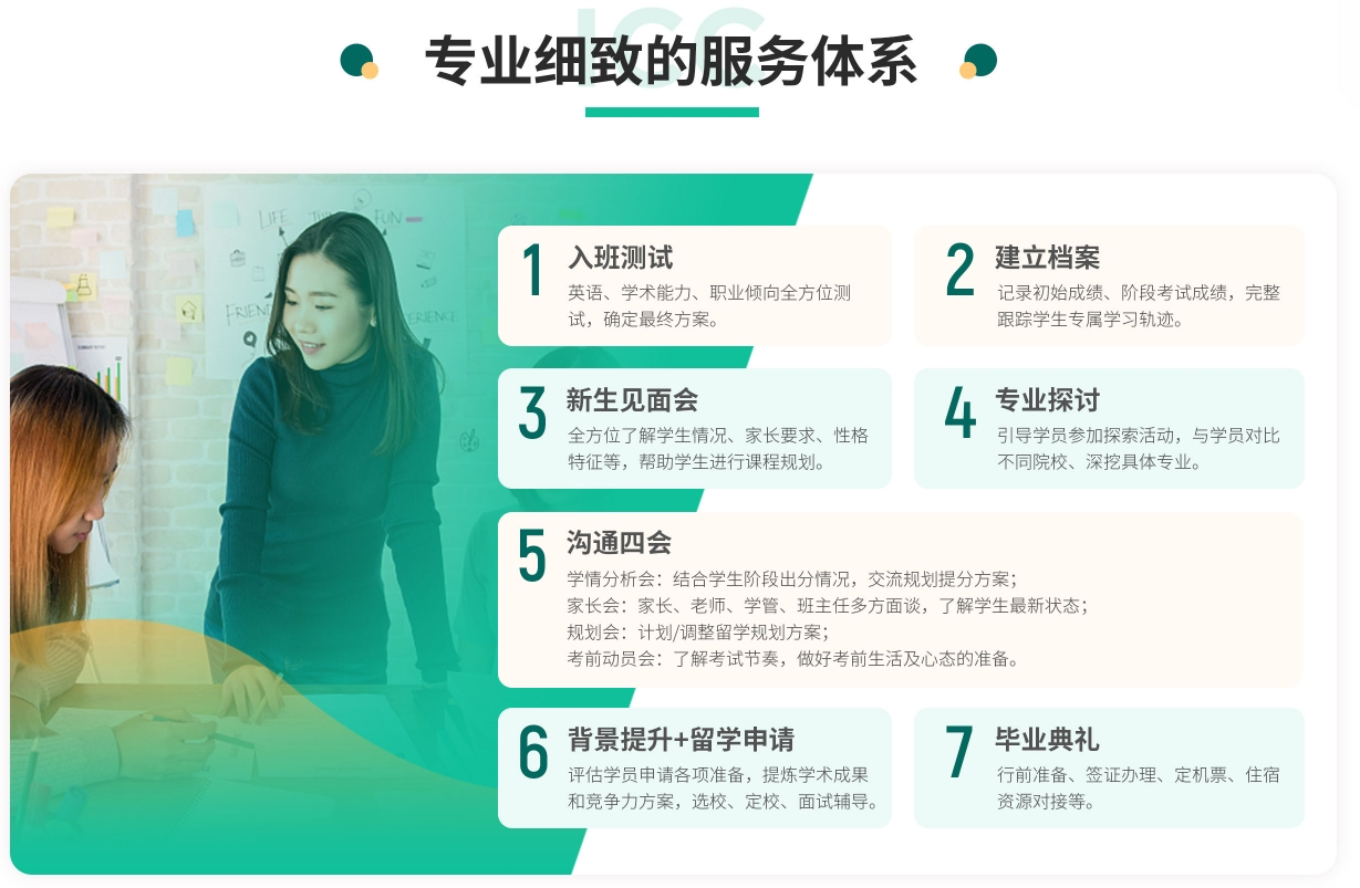 学员在杭州新东方学习将享受非常完善的一站式语言学习服务,包括学前规划、测评系统、学管服务、家校联盟等。同时,搭配有完善的线上工具来辅助学习,实现线上线下联动学习。