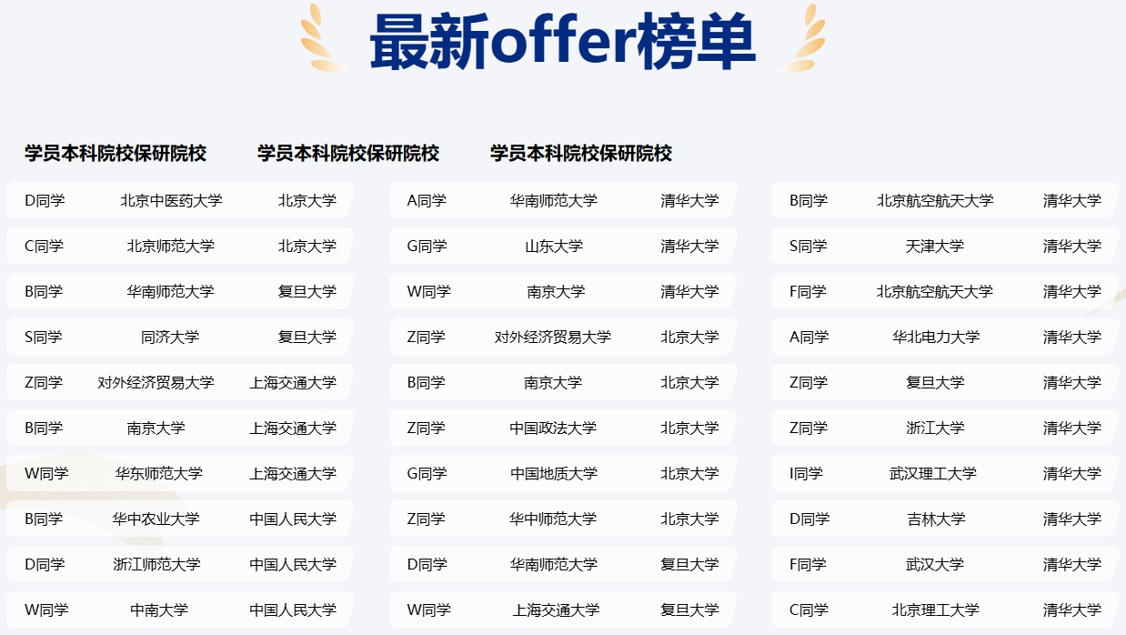 保研岛累计辅导18000+保研VIP学员,其中97-98%学员保研目标院校,累计收获4864枚清北复交人浙offer,还诞生双非保研清华、北大、复旦、人大的奇迹。