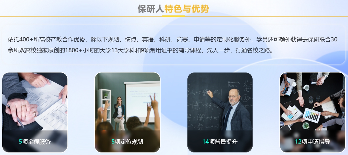 (专注于大学生保研辅导,打造“精准定位+全程规划+资源赋能”的服务体系,涵盖保研政策解读、科研背景提升、文书优化、面试辅导等全流程服务。)