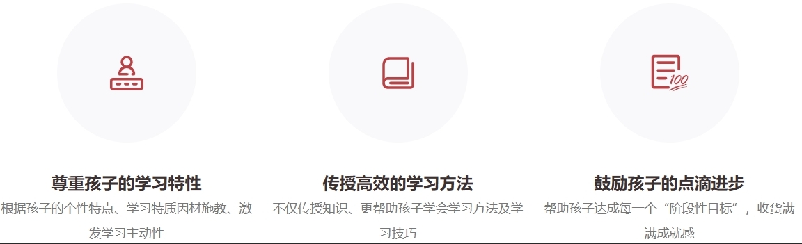 领先的教学理念:倡导以人为本的教育,在业内率先推出“个性化”创新教育理念;推出一个学生一个教学团队,一个学生定制一套教学计划的因材施教模式;最大程度地尊重和关注学生的个性差异,把中小学生从繁重的课业负担中解放出来;让学生有更多独立思考、独立实践的学习机会;提升素质并发挥潜能,促进学生的全面发展。