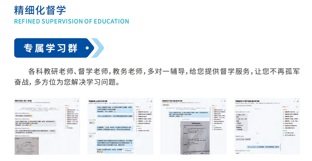 名师授课+督学管家:⾏业名师确保授课深度,配备专属督学⽼师负责⽇常管理、学习监督和⼀对⼀⼼理疏导。三重查到机制:严格执⾏早、中、晚三次考勤,确保学员出勤率,杜绝懈