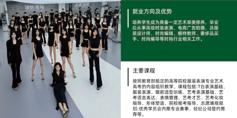 首先,自身条件构成天然优势,专业竞争压力更小。艺术类高考中,热门专业往往千军万马过独木桥,竞争异常激烈,而服装表演专业因对身高、形体等有明确要求,天然形成了筛选门槛,排除了大量不符合条件的考生,使得该专业的竞争氛围相对缓和,考生更容易脱颖而出。其次,培训周期短、见效快,兼顾文化课学习。相较于美术、音乐等需要多年功底积累的艺术类专业,服装表演专业的培训更具针对性,考生通过短期集中培训,就能快速掌握专业核心技能,无需花费数年时间深耕,既节省了时间成本,也能预留更多精力投入到文化课学习中,契合改革后对文化成绩的要求。