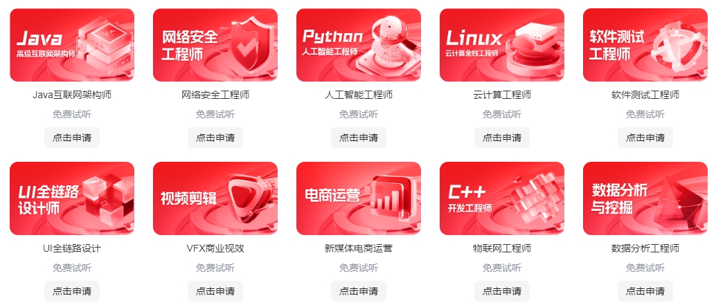 达内教育的课程体系覆盖IT、设计、运营三大方向,涵盖软件开发、网络安全、大数据、人工智能、UI设计、短视频运营等热门领域。课程内容不仅注重基础知识的系统性,更紧跟行业前沿技术。此外,达内教育还提供华为、红帽等认证课程,以及鸿蒙原生应用开发、AI大模型全栈工程师等提升课程,满足学员从基础到进阶的多元化学习需求。