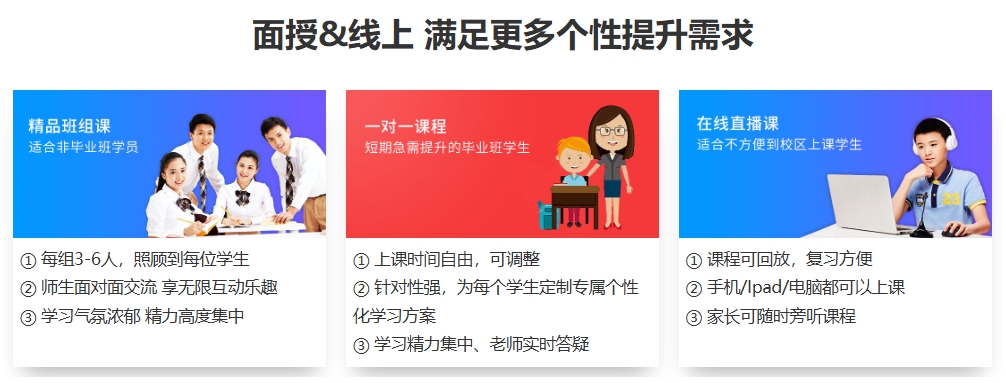 精品小组课:个性化小组课程,让每位学生都能得到关注和照顾,一个班2-3人,帮助孩子快速提分。